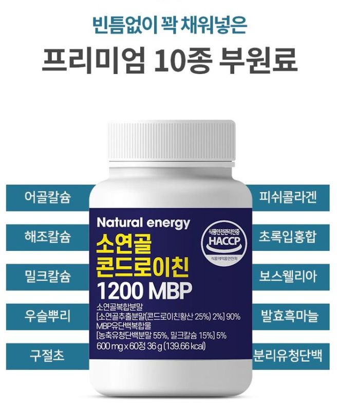 웰핏 소연골 콘드로이친 1200 MBP는 연골 구성 성분인 콘드로이친 황산과 **뼈 건강을 보조하는 MBP(밀크 베이직 프로틴)**를 함께 함유한 프리미엄 관절 보조제입니다. 단일 성분의 영양제와 달리, 관절의 윤활성과 뼈의 강도를 동시에 개선할 수 있도록 설계되었습니다. 특히 소연골 유래 콘드로이친을 사용하여 체내 흡수율을 높였으며, 인체의 연골 구조에 유사한 생체친화적 원료를 채택했습니다. 장기적인 관절 건강 관리가 필요한 중장년층부터, 운동량이 많은 직장인까지 폭넓게 섭취할 수 있습니다.